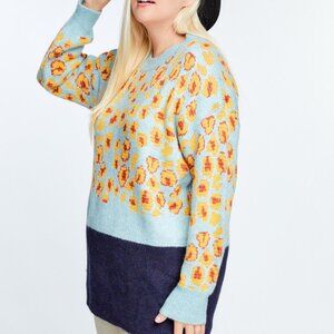 DAVI & DANI PRINTED ROUND NECK LONG SLEEVE LOOSE SWEATER SIZE LARGE