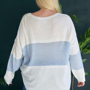 DAVI & DANI Plus Size Light Blue & White Colorblock Lightweight Sweater, Casual