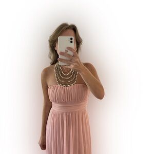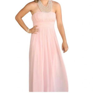 DAVID’S Bridal Petite Maxi Empire Waist Dress with Pearl Necklace - Size 3