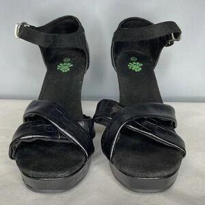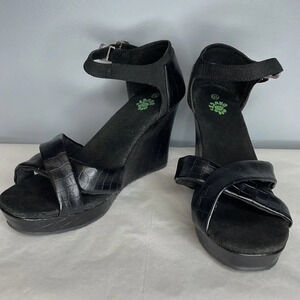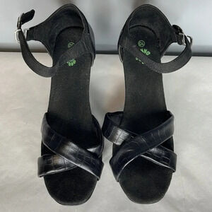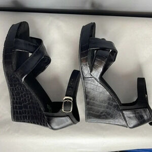 DAWGS Crossover Platform Wedges Black Crocodile Effect Open Toe Summer Size 10