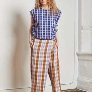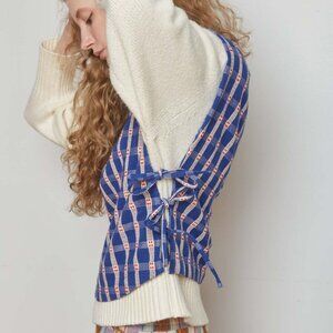 Blue, white, and red checkered pattern with subtle pops of color for a bold yet versatile look
