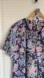 Vintage floral maxi dress with ruffle details. Features a mix of pink, purple, and green flowers on a dark blue background.