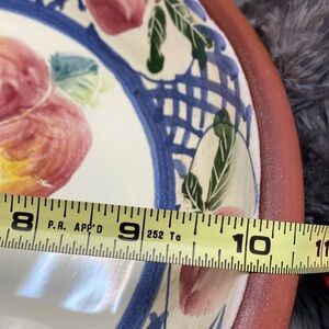Forged from red clay, and porcelain with hand painted with fruit and glazed (inside of dish only).