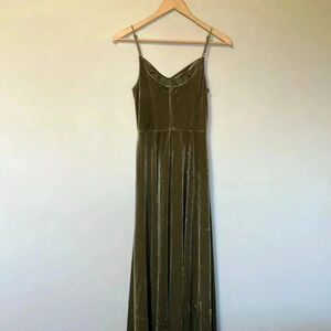 DB Studio Celebrate Green Velvet Front Slit Cowl Neck Gown Maxi Dress