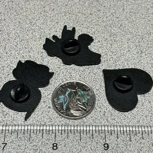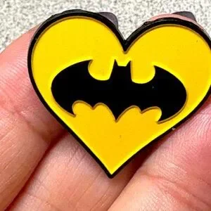 Charming Batman pin. Features iconic blue and black design. Perfect for fans.