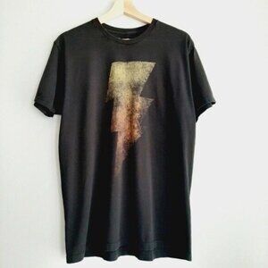 DC Comics Black Adam Lightning Bolt Black T-shirt Men's Sz L Flawed