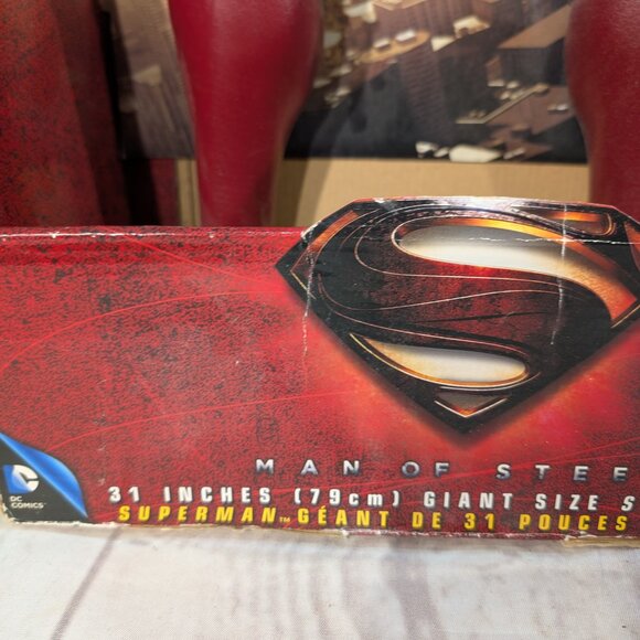 Make a bold statement with this impressive, large-scale 31-inch Superman action figure by JAKKS Pacific. From the 2013 film Man of Steel, this figure features the iconic hero in his vibrant blue plastic suit. With its imposing size and detailed sculpting, this piece is a must-have for any collector of DC Comics memorabilia or a fan of the superhero genre. It's perfect for display, making a powerful statement in any room or collection.
