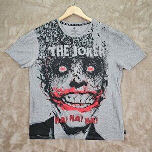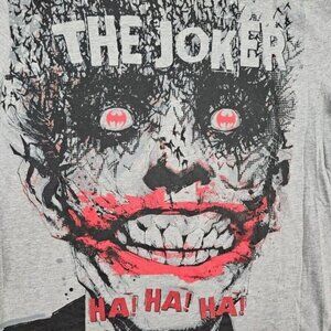 DC Comics Joker Dark Knight Batman Villain T-Shirt Mens Size L Gray Short Sleeve