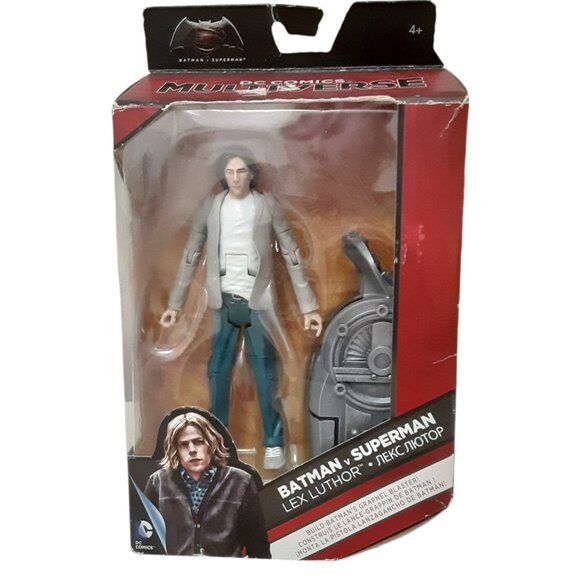 DC Comics fans will love this Multiverse Batman V Superman Lex Luther action figure, standing at 6 inches tall. Featuring boxed packaging, box is damaged, as pictured. This original licensed reproduction of the iconic villain is a must-have for collectors. Build Batman's Grapnel Blaster. Perfect for fans of the Superman franchise, this figure showcases the intricate detailing and design of Lex Luther, bringing the character to life in a dynamic way. Add this figure to your collection and relive the epic battles from the Batman V Superman movie.