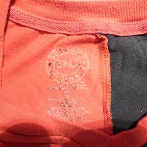 In good condition! Sizing and material details on the inside is faded. Lots of life left! V-neckline, baby tee style. Harley Quinn trademark colours in red and black. Form fitting, cute top!