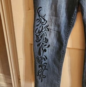 DC Jeans 18P Blue Denim w/ Black Floral Embroidery & Studs – Penningtons Y2K
