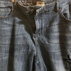 These jeans size 18P purchased at Penningtons are in excellent used condition. Model photos are AI generated for general outfit inspiration only, not actual jeans.