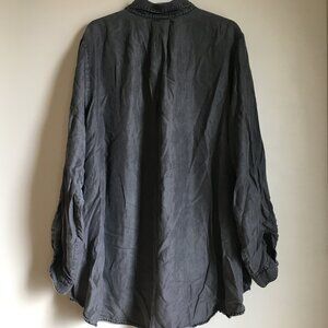 Very good preowned condition,grey, button up dress shirt by D/C Jeans of Penningtons. Can be dressed up or down. It has some weight to it so I don't believe it's 100% lyocell. Has that coastal cowgirl look. Very wrinkly in photos, which makes me think it has some lyocell in it. Fret not. I always ensure pieces are clean and ironed prior to shipment.