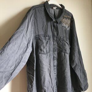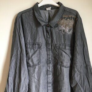 D/C Jeans Flowy Coastal Cowgirl Studded Cotton Button Up Dress Shirt