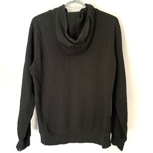 Details - Black pullover hoodies with distressed looking DC logo graphic, has some marks on sleeve and side. (See photos)
