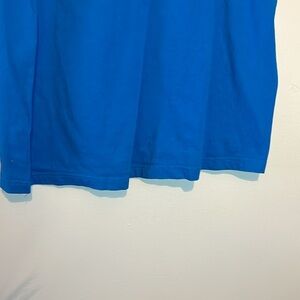 Blue DC Shoes t-shirt with bold red graphic design. Features 'American Made' text.