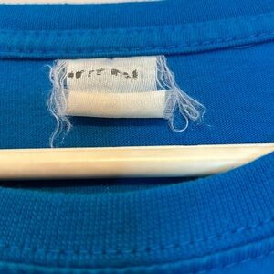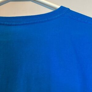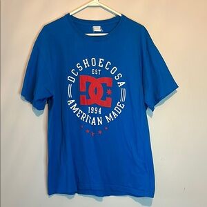 Blue DC Shoes t-shirt with bold red graphic design. Features 'American Made' text. PTP 23” Length 29”