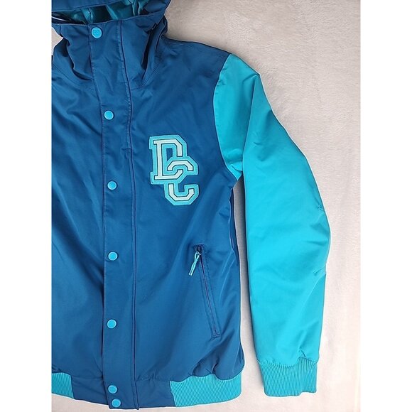 Has some light stains shown in photos. DC Shoes Snowboarding Varsity Jacket Women's Size Large 10K Waterproof Winter Teal/Blue