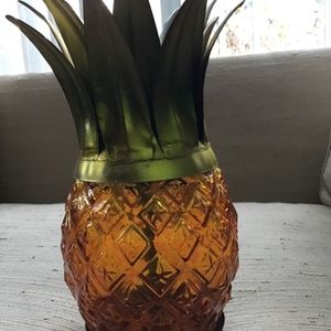 DECORATIVE AMBER GLASS AND BRASS COLOR METAL PINEAPPLE