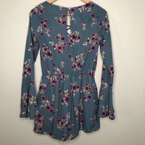 Dee Elle Blue Floral Pattern "When I Met You in the Summer" Romper Size Small