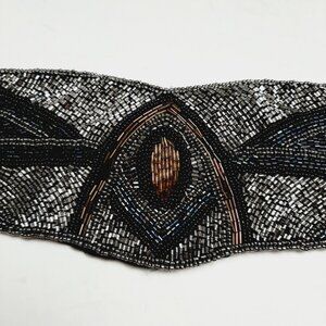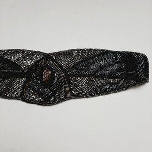 • Elegant black beaded belt featuring an intricate design. Perfect for adding a touch of sophistication to any outfit.