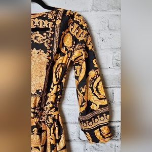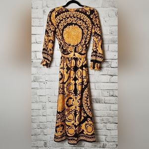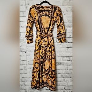 DEEP V-neck Long Beach Bohemian Print Kimono with Belt