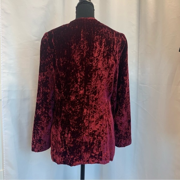 Beautiful timeless classic blazer. Enhancing the waistline and contouring the hips. No tags on this blazer so unaware of brand or material content. Gold hardware button.