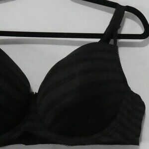 Sleek and elegant, this black bra features a stylish striped pattern that adds a subtle touch of sophistication