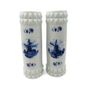 DELFT BLUE Dutch Windmill Vase Set Holland Vintage 9"