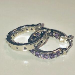 Delmar Jewellers Amethyst Sterling Silver Hoop Earrings Half Inch .5”