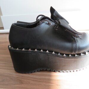 DEMONIA Dolly 05 Platform Oxford Lace Up Bow Studded Creeper Shoes - Women's Size US 7