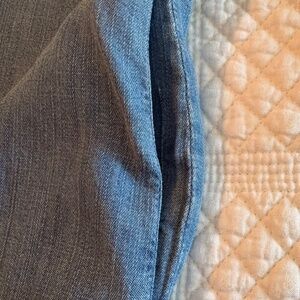Soft chambray denim dress with white buttons, uneven hem, 2 side pockets and cuffed short sleeves.