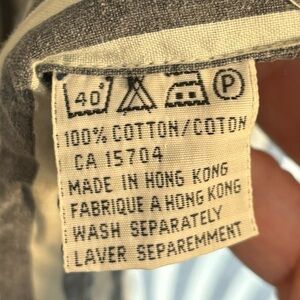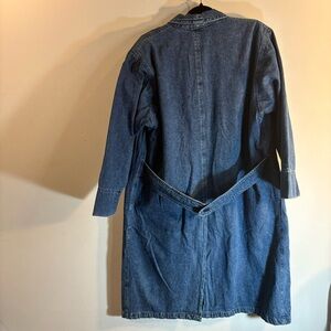 DENIM JEAN COAT Sz XL (estimated) Lined Contrasting Stripe Pockets 100% Cotton Shoulder Pads. Made in Honk Kong. Thick and warm. Perfect as a transition piece.