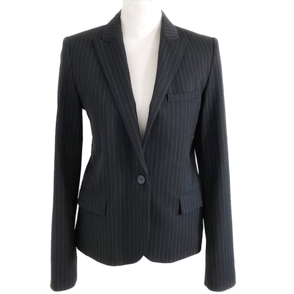 DENIM & SUPPLY RALPH LAUREN WOMEN BLACK WHITE PINSTRIPE PEAK LAPEL BLAZER - S