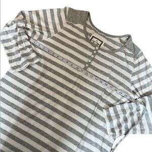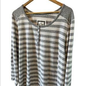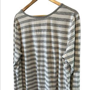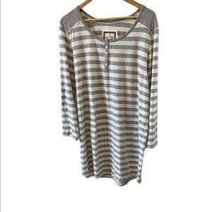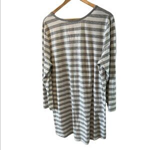 DENVER HAYES Grey&White Striped Long Sleeve Mid Length Sleep Shirt L