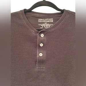 Black long-sleeved waffle top with 3 buttons at the neck.
