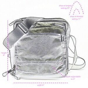 Details: Multi-pockets, Adjustable crossbody strap, Attached key holder