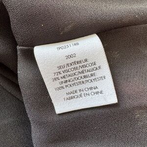 • 72% viscose, 28% metallized fibers; lining: 100% polyester