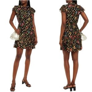 DEREK LAM 10 CROSBY • Edith Ruffled Floral Mini Dress in Black