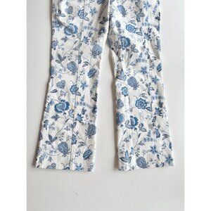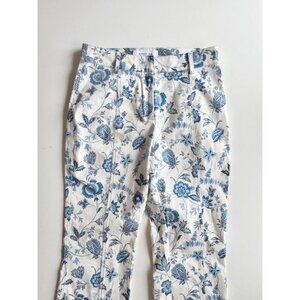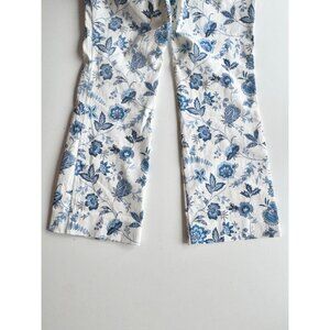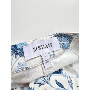 DEREK LAM 10 CROSBY Meloe White Blue Floral Stretch Twill Cropped Pants, Size 2