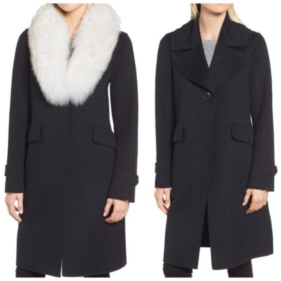 Derek Lam Wool Blend Reefer Coat with Removable faux Fox Trim collar,