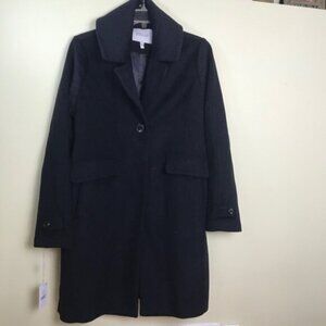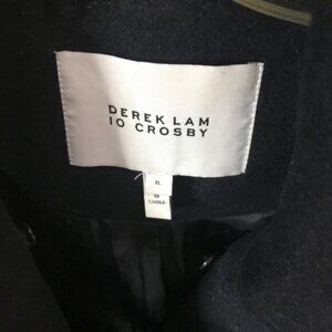 DEREK LAM 10 CROSBY New Minimalist Wool Coat Faux Fur Trim Oversized Pockets XL