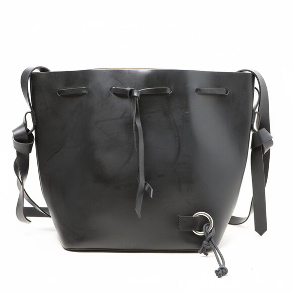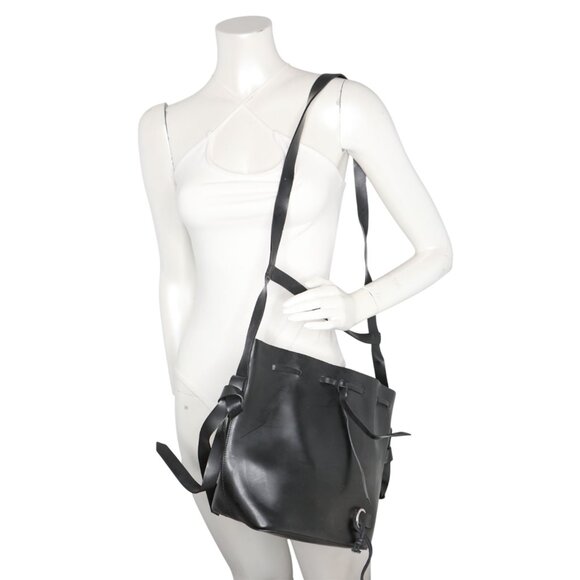DESIGNER Daniela Barros Black Leather Shoulder Bag Bucket Drawstring Minimalist