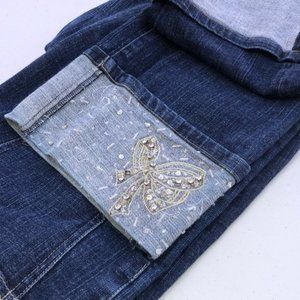 0829 CUTE BUTTERFLY EMBROIDERY ON POCKET AND CUFF !! ATTACHED and FINISHED CUFF ROLLUP BOYFRIEND STYLE !! PREMIUM VINTAGE STONEWASHED HEAVYWEIGHT DENIM 97% COTTON !! NOT ALTERED !! 8” MIDRISE !! VINTAGE QUALITY DENIM and COOL DESIGNER style 😎