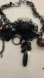 black metal chain braided with black velvet ribbon. dark gray beads wrapped in black mesh . lots of details