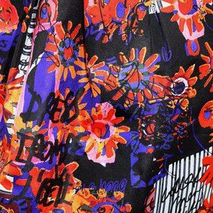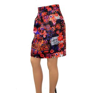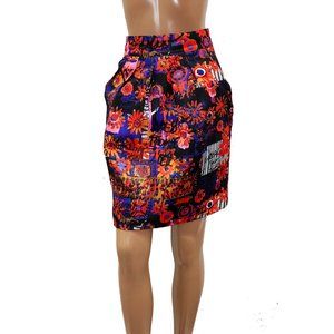 DESIGUAL FLOWER Power Vibrant Artsy Logo print Mini Skirt With Pockets 40