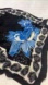 Vibrant floral patterned scarf with red, black, and blue designs, with flowers and planets/galaxy. Perfect for adding a pop of color to any outfit.