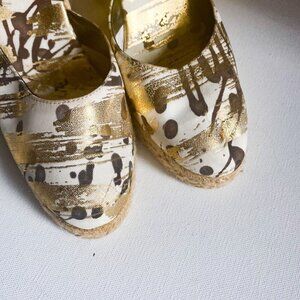 DESIGUAL Gold Paint Splatter Espadrille Wedges Sz 40