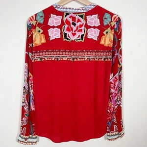 WHAT: Long sleeve regular fit red pattern printed boho blouse