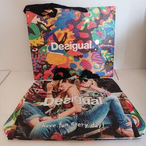 DESIGUAL Shopping Bag Lot of 2 Reusable Large PVC and Paper Lot Bags